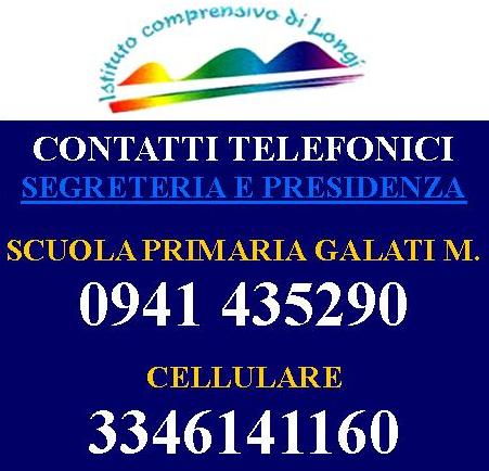 SI PORTA A CONOSCENZA CHE, CAUSA LAVORI NELLA SEDE CENTRALE DI LONGI, LA SEGRETERIA E LA PRESIDENZA SONO STATI TRASFERITI MOMENTANEAMENTE NEI LOCALI DELLA SCUOLA PRIMARIA DI GALATI MAMERTINO